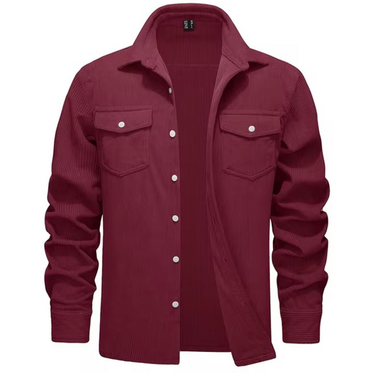 Corduroy Collard Mens Button Up Long Sleeve- Light Weight Casual Shirt With Buttons & Pockets